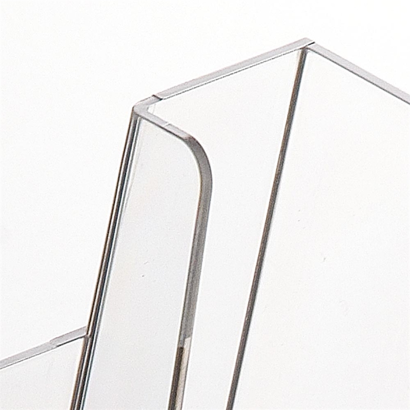Der Prospekthalter ist aus spritzgegossenem Polystyrol gefertigt, einem strapazierfähigen und leichten Material, das den täglichen Gebrauch an belebten Orten wie Empfangsbereichen, Ausstellungen und Geschäften standhält. Dieser AcrylProspekthalter ist speziell für A5 (14,8 x 21 cm) Prospekte oder Flyer konzipiert, mit einer Innen tiefe von 3,3 cm, die Ihnen genügend Platz bietet, um mehrere Kopien Ihrer Prospekte oder Flyer aufzubewahren.