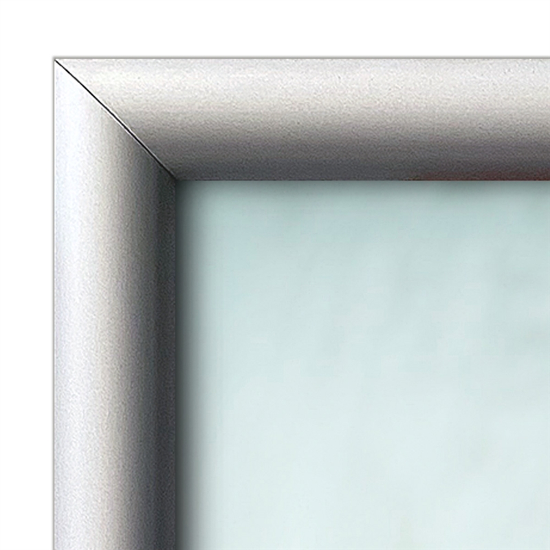 • Schlank und elegant: Mit einem silber eloxierten Aluminiumrahmen von 25 mm und einem Gewicht von nur 1,3 kg verleiht dieser Rahmen Ihren Plakaten ein modernes und professionelles Aussehen.