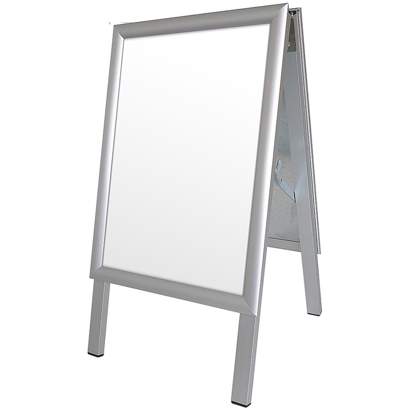 Gleichzeitig besteht die Frontplatte aus blendfreiem APET, damit das Schild unter allen Lichtverhältnissen deutlich sichtbar ist. Alu Line A3 - Vertikales Kundenstopper hat einen intelligenten Klapprahmen in 25 mm Profil mit Gehrungsecken, der das Einsetzen und Austauschen von Plakaten erleichtert. Diese Funktion ist besonders nützlich für diejenigen, die häufig die Botschaft auf ihrem Schild wechseln müssen. Die Abmessungen des Schilds betragen 33 x 57 x 39 cm und es ist für Plakate der Größe 29,7 x 42 cm ausgelegt.
