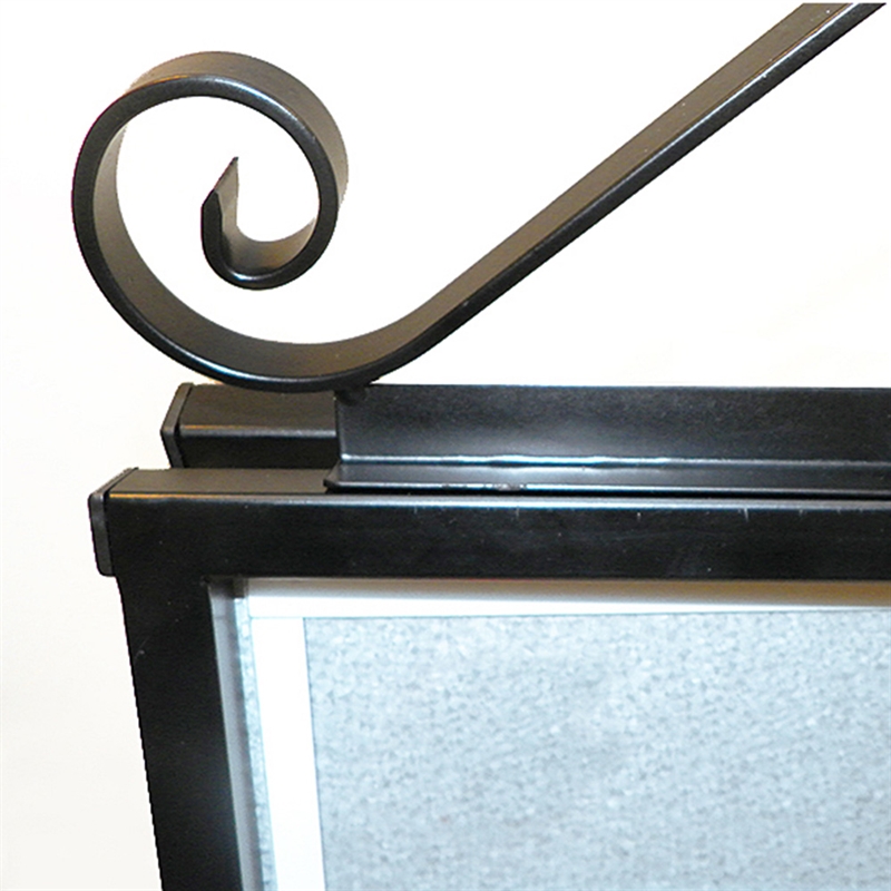 • Einzigartiges dekoratives Detail an der Spitze mit Schmiedeeisenverzierungen verleiht dem Schild auch Charme