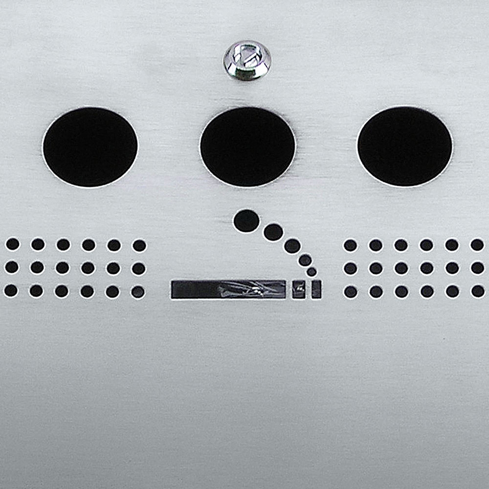 • Vorderseite aus gebürstetem Edelstahl für ein elegantes Aussehen und einfache Reinigung.