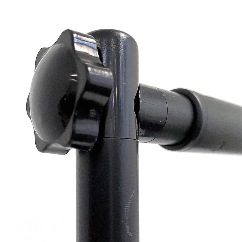 Banner Wall Teleskopic. Dies ist ein unverzichtbares Messegerät in schwarzer Farbe. Die Bannervorrichtung kann teleskopisch auf eine maximale Größe von 240x240cm erweitert werden. Trotz ihrer großen Größe wiegt sie nur 6,5 kg, was sie einfach zu transportieren und zu handhaben macht. Ideal für den Einsatz auf allen Messen und Ausstellungen.