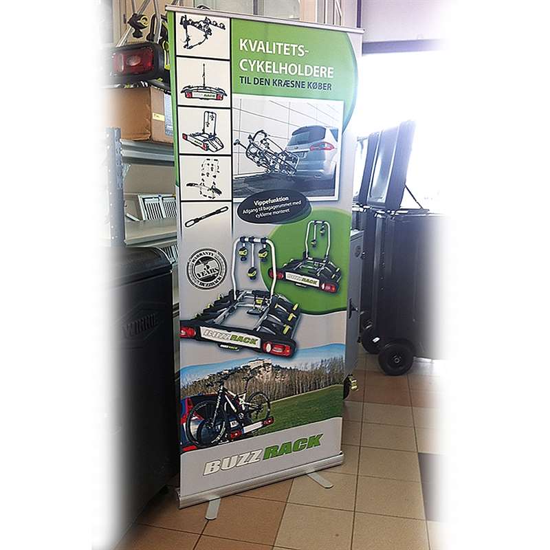 • Stabile Konstruktion mit einer Breite von 85 cm und stabilen Stützen aus zwei Füßen, damit Ihr Banner gestochen scharf und straff präsentiert wird.