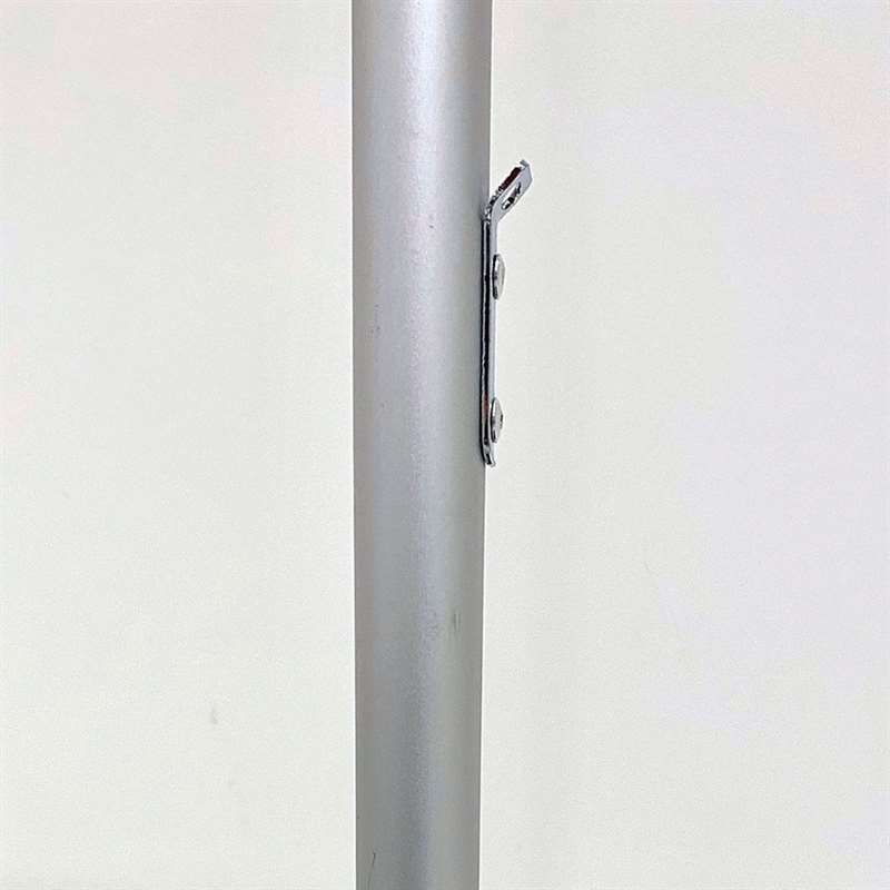 Solider und robuster Outdoor-Flaggenhalter für gebogene Flaggen, hergestellt mit einem starken Aluminiumstab in Silber mit einem Durchmesser von 25 mm. Dieser Halter ist einfach zu montieren.
