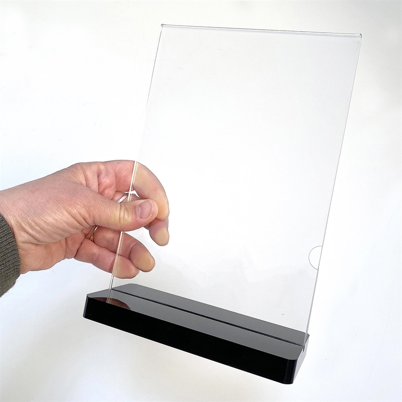 • Mit einem schwarzen Acrylsockel für eine elegante und professionelle Präsentation Ihrer Menüs oder Informationen