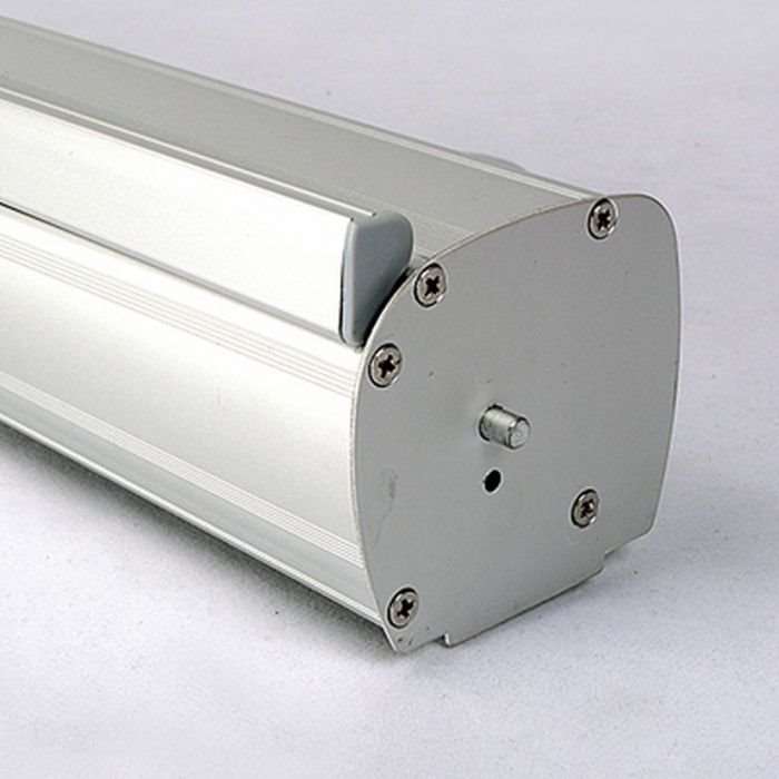 Es ist elegant und schlank, aus silber-eloxiertem Aluminium gefertigt, was bedeutet, dass es sowohl robust als auch leicht ist. Das Roll-Up ist einfach zusammenzubauen, dank des Topprofils mit Klemmleiste und dem starken Klebeband auf der Bodenrolle. Dies erleichtert die Bannermontage. Wenn Sie die Botschaft ändern müssen, ist es einfach, neues Klebeband auf die Bodenrolle aufzubringen. Das Roll-Up wird mit einer luxuriösen schwarzen Tasche geliefert, was die Verwendung noch praktischer macht. Nicht nur, dass die Tasche robust ist, sie hat auch einen praktischen Reißverschluss entlang der Seite.