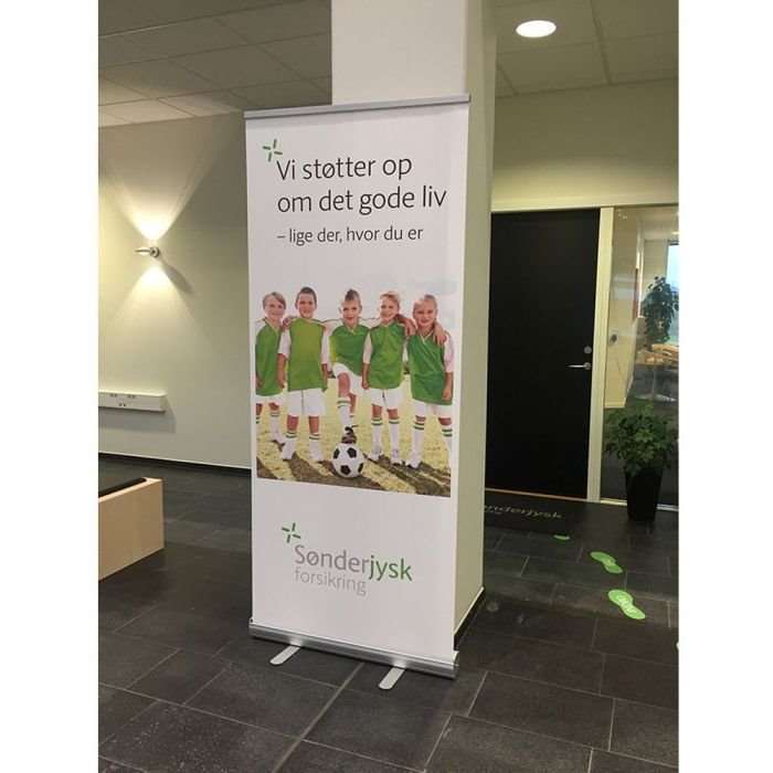 Das Roll-Up misst 87 x 212 cm, was eine ideale Größe für Ausstellungen ist.
