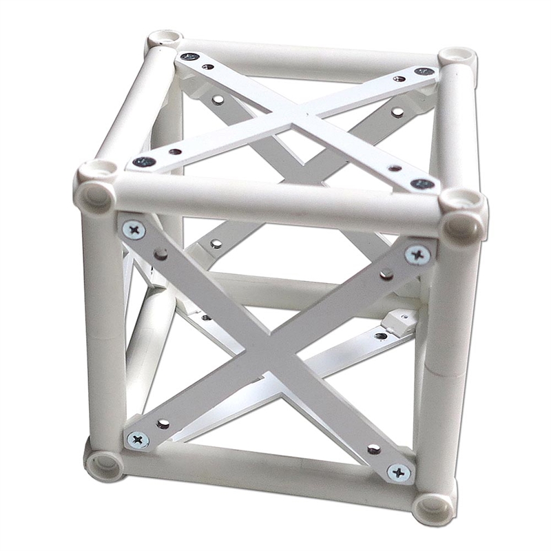 • Dieses Crown Truss System ermöglicht die Doppelseitigkeit durch den Kauf zusätzlicher Klammern und Alu-Profile zur Aufhängung von Batterien.