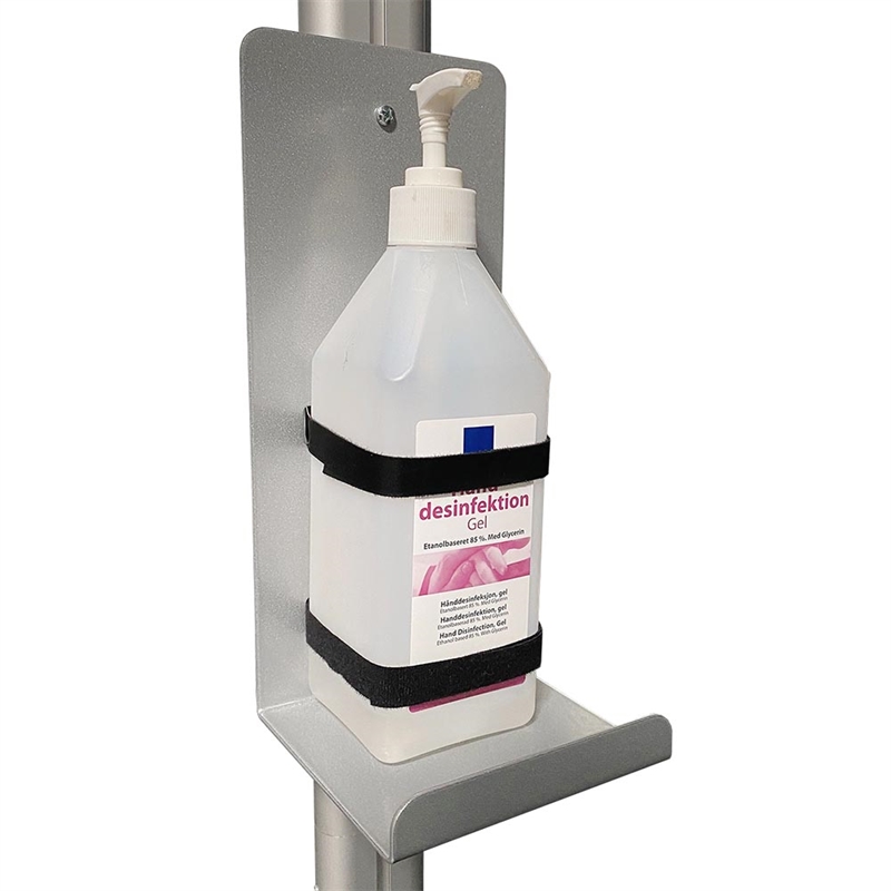 • Sicherer Halt der Handdesinfektionsmittel-Flasche: Das Regal an der Station ist mit zwei Klettverschlussbändern ausgestattet, um sicherzustellen, dass die Flasche nicht herunterfällt.