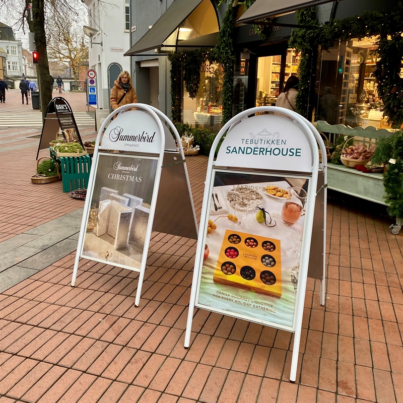 Die A-Platte hat ein schlichtes und stilvolles Design mit einer abgerundeten Oberseite und einer Logoplatte über dem Rahmen. Hier ist ausreichend Platz für die Anbringung Ihres Firmenlogos.