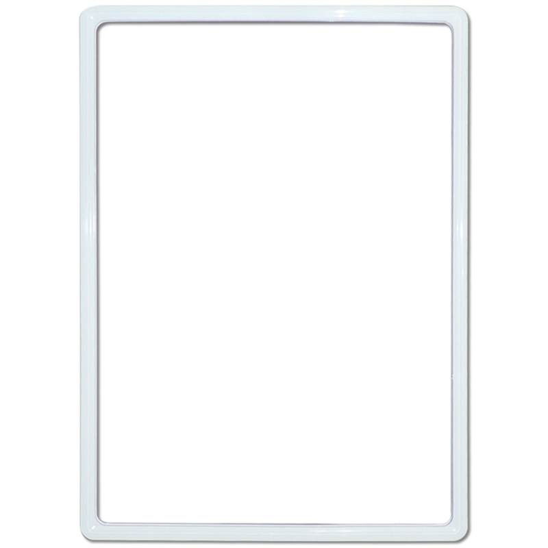 Doppelseitiger ABS-Kunststoffrahmen für Papier oder Pappe. An der kurzen Seite des Rahmens einsetzen. Lieferung ohne Kunststofffolie.