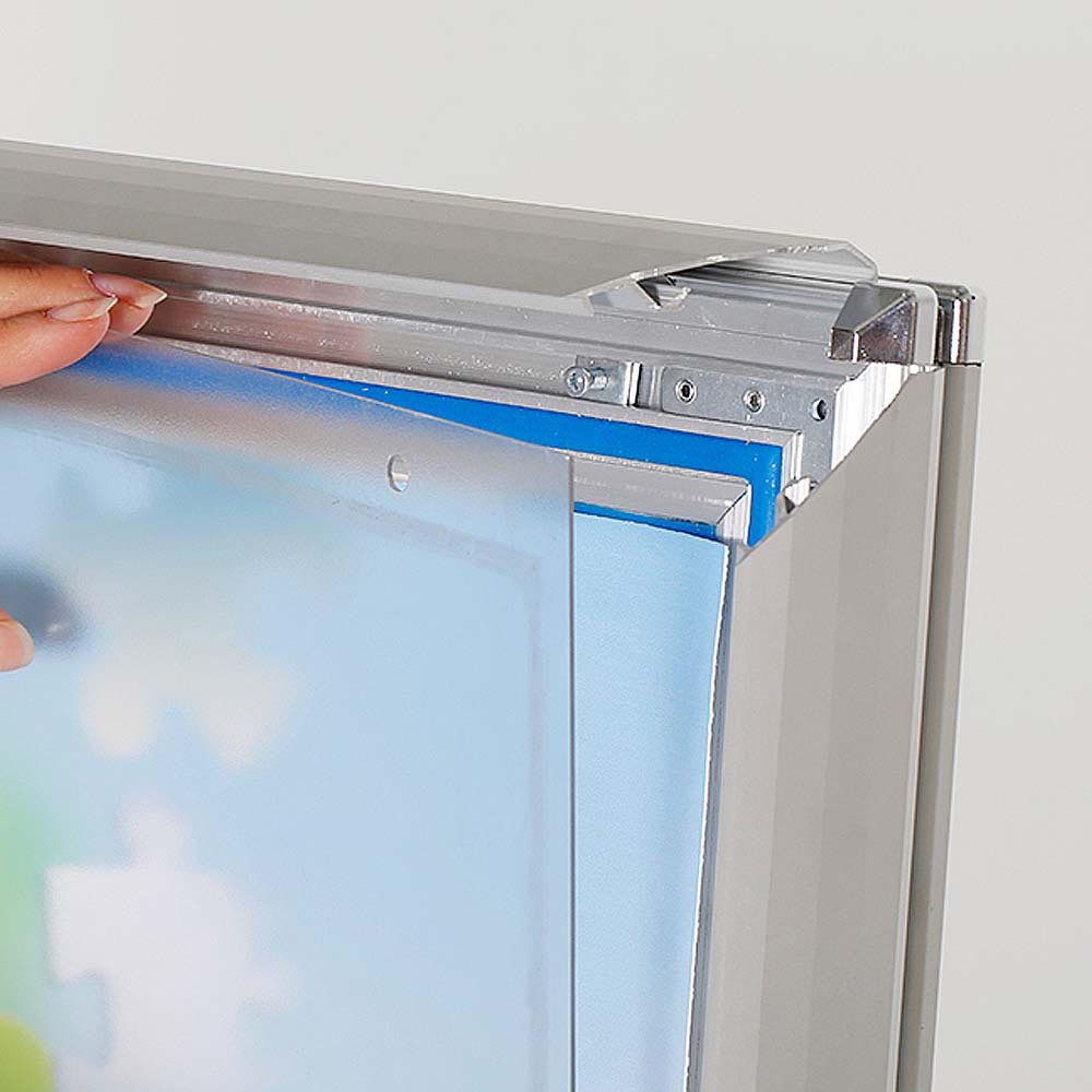 Doch nicht nur seine Robustheit macht diese Frontplatte zur idealen Wahl für Ihr Kundenstopper. Sie wird auch mit blendfreien APET-Frontplatten geliefert, die sicherstellen, dass Ihre Botschaft immer klar und deutlich zu sehen ist, unabhängig von den Lichtverhältnissen. Dies ist ein Muss für jedes Kundenstopper, da es bedeutet, dass Ihre Botschaft zu jeder Tageszeit immer klar sichtbar ist.