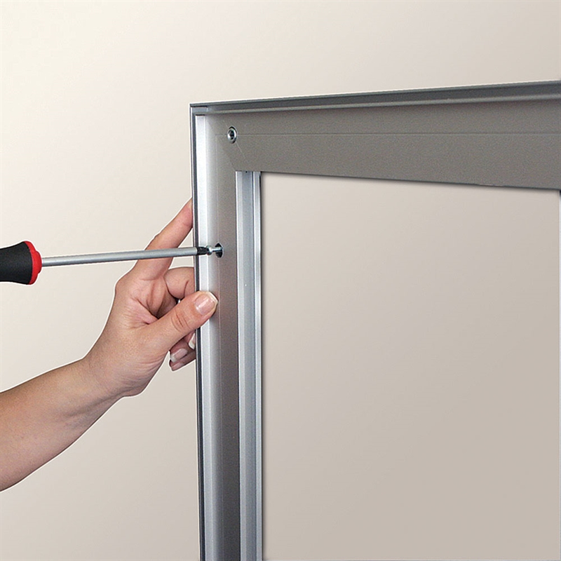 Rahmen mit eloxiertem Aluminiumprofil – 34 mm tief. Das Banner wird auf einen Nylonstreifen aufgenäht und im Rahmen montiert. Die Rahmen mit einer Länge von 3 Metern werden mit einem H-Profil geliefert, um dem Rahmen zusätzliche Stabilität zu verleihen. Lieferung erfolgt unmontiert im Set (ohne Nylonstreifen und Banner). Empfohlen für den Innenbereich.