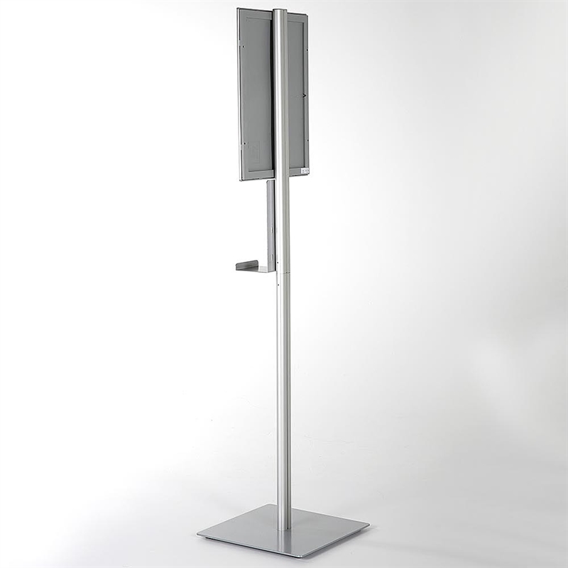 ist ein nützliches Werkzeug, um Ihnen zu helfen, Ihre Schutzausrüstung im Büro oder zu Hause zu organisieren und zu handhaben. Das Design mit einem modernen und minimalistischen Look ist aus mattsilber eloxiertem Stahl gefertigt. Der Halter ist robust und langlebig, ideal für schwere Desinfektionsmittelflaschen.