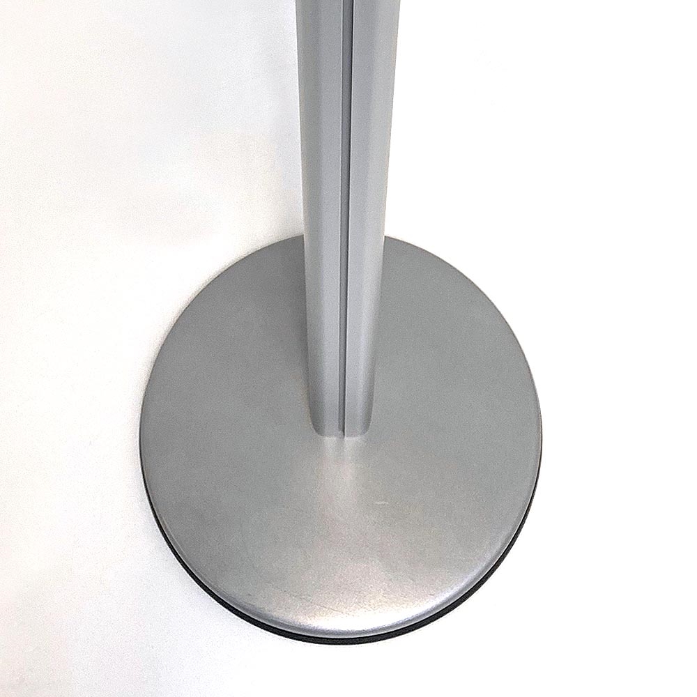 Der Desinfektionsspender eignet sich perfekt für Büros und andere Orte, an denen ein schneller und einfacher Zugang zu Desinfektionsmittel benötigt wird, während Sie Ihre Besucher mit wichtigen Nachrichten oder Werbung informieren. Silber eloxiert und wiegt 102 kg. Die große Originalgröße beträgt Ø 45 x 190 cm, was sie zu einer auffälligen Ergänzung macht, die beachtet wird.