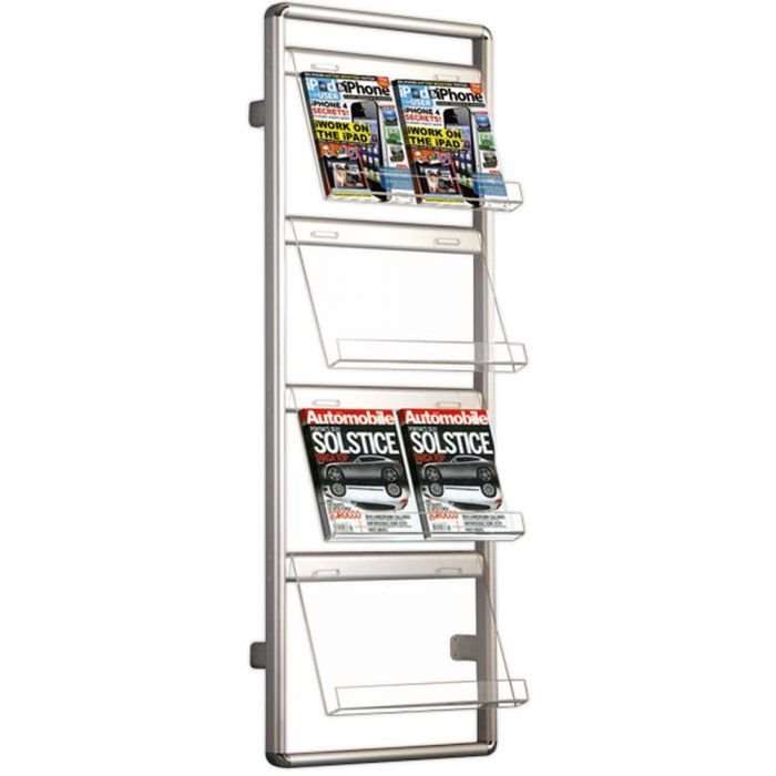 Dieser starke und langlebige Prospekthalter ist wandmontiert und aus hochwertigem Aluminium gefertigt, was ihn perfekt für Büroumgebungen oder Ausstellungen macht. Er bietet Platz für acht A4-Prospekte, da jeder Regalboden aus 3 mm Acryl gefertigt ist, was die Robustheit und Langlebigkeit des Halters weiter gewährleistet.