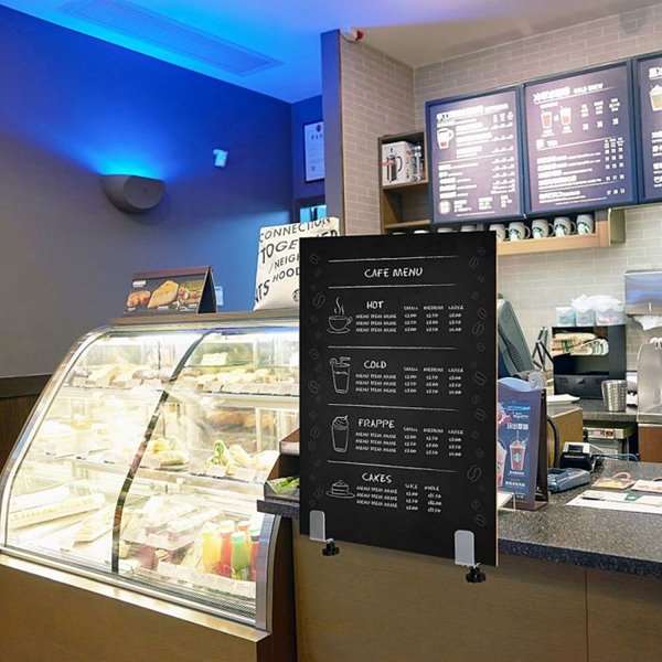 Der Schutzschild kann problemlos entweder vor oder zwischen Tischen und Theken montiert werden.