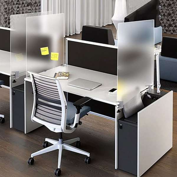 Mit diesem Edge Clamp Kit wird die Installation eines hygienischen Schutzschilds auf Tischplatten einfach.