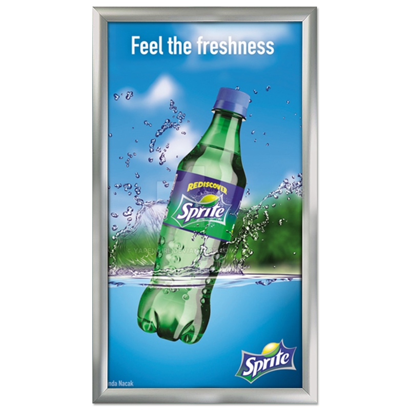 • Klapprahmen aus silberfarbenem Aluminium, 45 mm Profil, ideal für große Plakate im Format 100 x 200 cm.