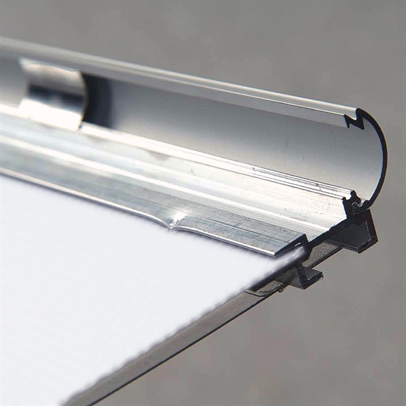 • Silbereloxierter Aluminium-Klapprahmen im A5-Format mit einer Breite von 15 mm sorgt für ein elegantes und professionelles Erscheinungsbild Ihrer Plakate.