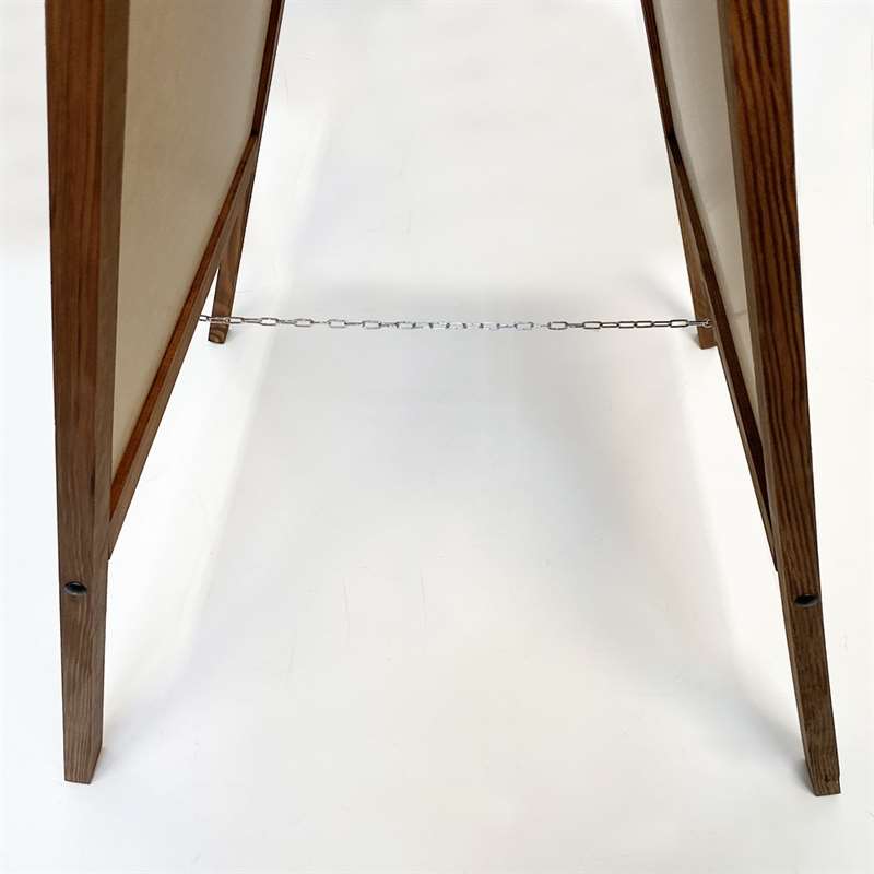 Das Aufstellen des Schildes ist einfach und unkompliziert, da es sehr leicht ist und Sie daher keinen großen Kraftaufwand zum Anheben aufwenden müssen. Die schicke Metallkette auf der Innenseite sorgt dafür, dass das Schild nicht zusammenfällt, wenn es vor dem Restaurant, Café, Hotel oder anderswo steht.