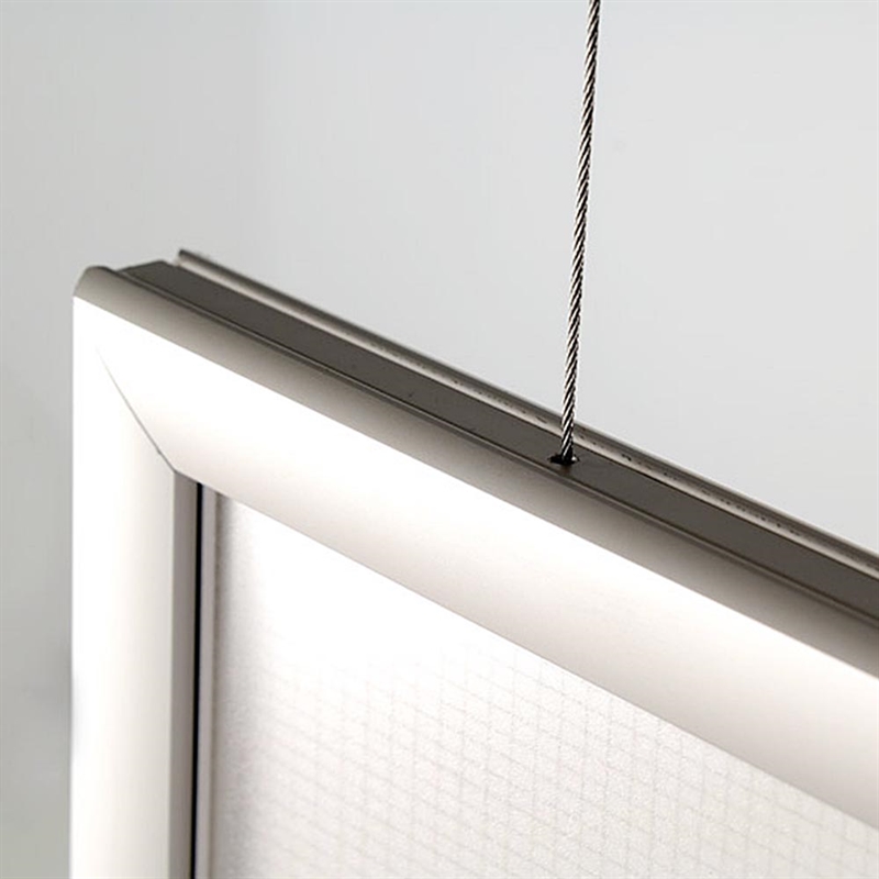 Mit Abmessungen von 45,2 x 62,6 cm eignet er sich ideal zur Präsentation von A2-Plakaten (42 x 59,4 cm) mit einer sichtbaren Größe von 40 x 57,4 cm. Dieser LED-Lichtrahmen wird auch mit zwei Aufhängevorrichtungen, Schrauben und Dübeln geliefert, damit Sie Ihre Werbung schnell und effektiv starten können. Beachten Sie jedoch, dass dieser Lichtrahmen für den Innenbereich konzipiert ist.