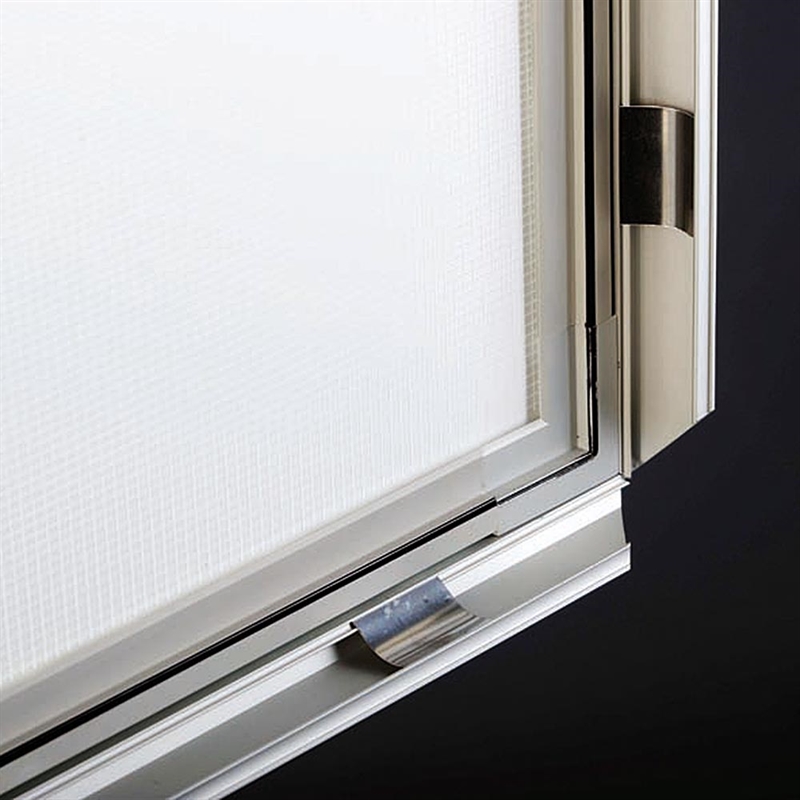 Infoständer aus Aluminium mit leistungsstarkem LED-Licht. Mit Fuß und Schnappverschluss im Format A4 oder A3 mit 25 mm Profil und Gehrungsecke. APET-Antireflex-Frontkunststoff. Höhenverstellbar und optionale Einstellung – vertikal oder horizontal – geneigt oder gerade.