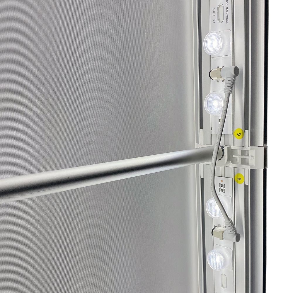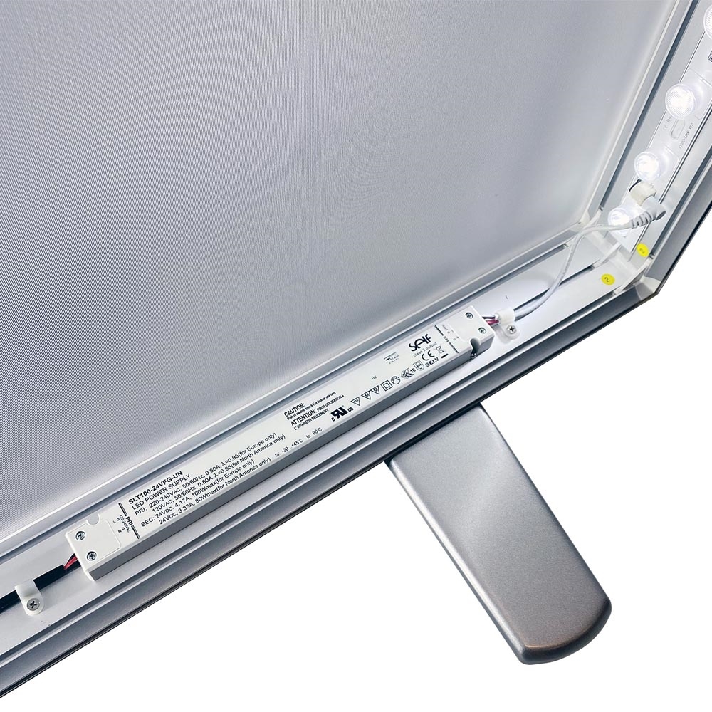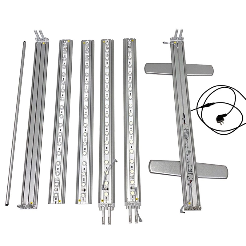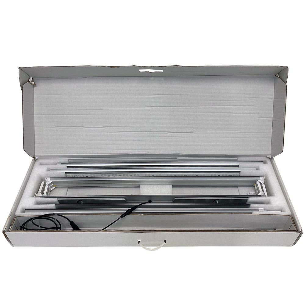 Doppelseitiger Leuchtkasten aus Aluminium mit zwei Füßen und leistungsstarken LED-Dioden an beiden Seiten, die für ein superstarkes und gleichmäßig verteiltes Licht auf der Botschaft sorgen. Perfekt für Messen, in Geschäften, Schaufenstern, Ausstellungen, Ausstellungsräumen usw. Wird separat in einer Box mit Griff geliefert. Schneller Aufbau und Aufbau ohne Werkzeug. inkl. 2 Meter Kabel. Das Banner ist auf Textil gedruckt - auf dem ein Gummistreifen aufgenäht ist (nicht im Lieferumfang enthalten).