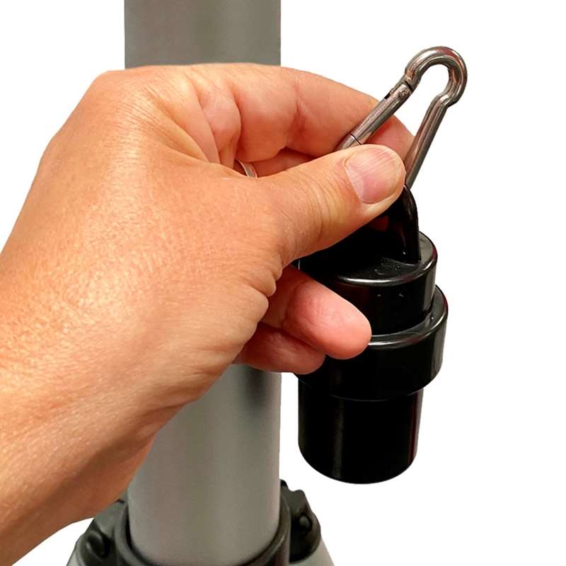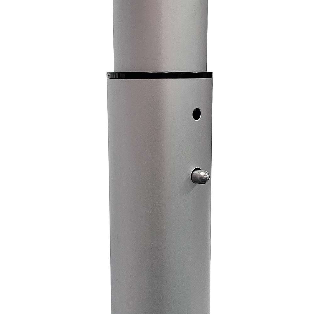 5,2 Meter hoher Event-Fahnenmast aus eloxiertem Aluminium. Mit großem grauen Kunststoffsockel, der mit 70 Litern Sand oder Wasser befüllt werden kann – bei Frost Frostschutzmittel nachfüllen. Geeignet für Windgeschwindigkeiten bis zu 8 m/Sek.