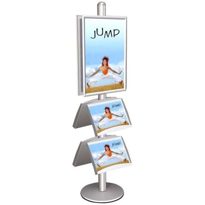 Aluminiumständer ausgestattet mit zwei 25-mm-Klapprahmen und vier 2 A4-Prospekthaltern aus Stahl oder Acryl. Für den Innenbereich.