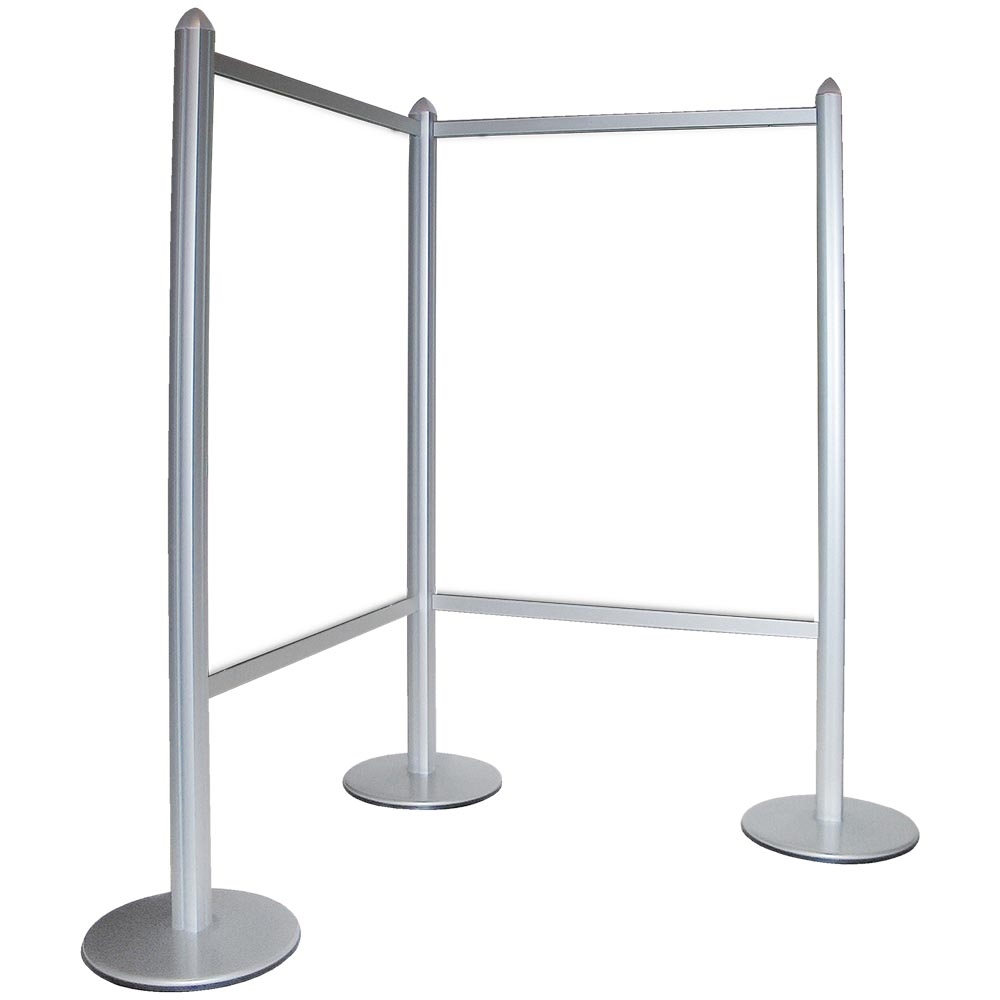 Unser Multi Stander Banner Ecke ist eine leichte und vielseitige Ausrüstung, die aus 4-Kanal-Multi-Ständern in einer Höhe von 190 cm mit einem stabilen runden Fuß besteht. Die leichten Aluminiumprofile lassen sich mit zwei Inbusschrauben einfach montieren. Sie haben die Möglichkeit, entweder ein Banner oder eine Platte mit einer Breite von bis zu 106 cm zu montieren.