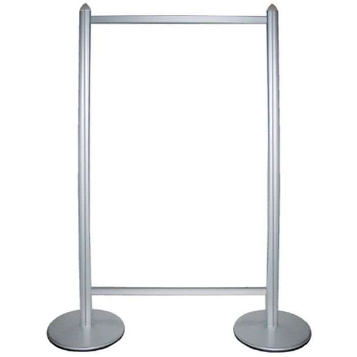 Er besteht aus vier 190 cm hohen Multi-Standprofilen mit einem runden Fuß, was ihn extrem stabil und sicher im Gebrauch macht. Die Profile bestehen aus silbereloxiertem Aluminium, das einfach mit nur zwei Inbusschrauben zu montieren ist. Das bedeutet, dass Sie auch in einer hektischen Umgebung Ihr Banner oder Schild einfach und schnell aufstellen können. Sie können entweder ein Banner oder eine 6-8 mm Platte mit einer Breite von bis zu 106 cm montieren, um ausreichend Platz für Ihre Botschaft oder Ihr Design zu schaffen.