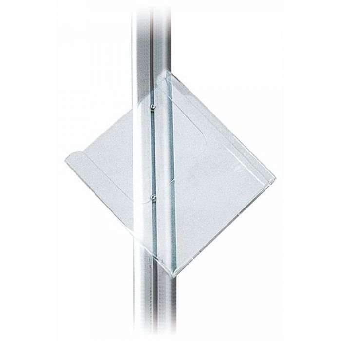 Er besteht aus strapazierfähigem Polycarbonat und enthält Befestigungen für eine einfache Montage und Anwendung. Die transparente Farbe ermöglicht es dem Inhalt, durchzuscheinen und im Mittelpunkt zu stehen, was sie ideal für die Präsentation von Prospekte, Flyern oder anderen A4 (21 x 29,7 cm) Materialien macht.