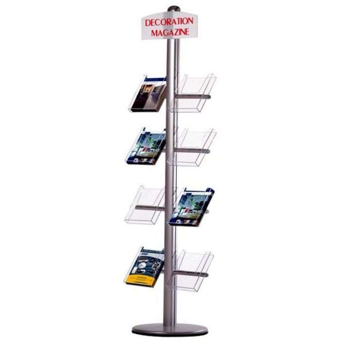Dieser Multiständer, der für die einseitige Anzeige konzipiert ist, ermöglicht es Ihnen, bis zu acht A4-Prospekte gleichzeitig in seinen 21x29,7 cm großen Polycarbonat-Prospekthaltern zu präsentieren.