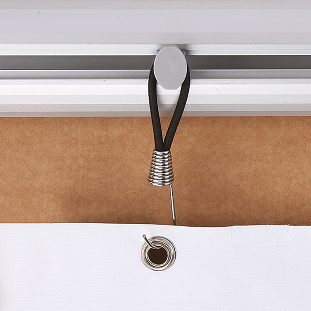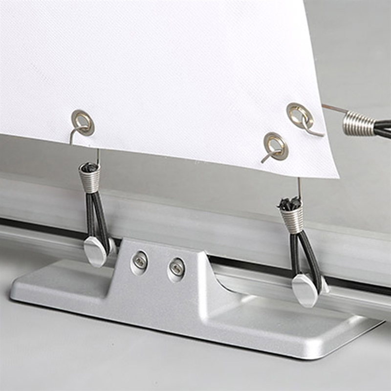 • Das Banner mit Metallösen wird mithilfe von Haken mit Gummizügen am Rahmen befestigt, was die Einrichtung schnell und unkompliziert macht.