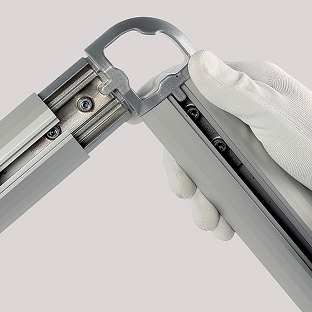 • Das Bannersystem ist aus leichtem Aluminium gefertigt, was sicherstellt, dass es langlebig ist und leicht zu transportieren.