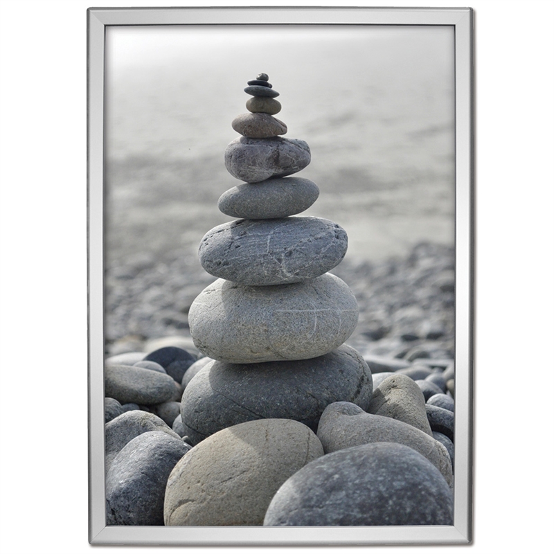 Sehr preisgünstiger Klapprahmen mit 32 mm Profil und Gehrungsecke. Eloxiertes Aluminium. Geformte Rückplatte aus grauem Polystyrol. APET-Antireflex-Frontkunststoff.