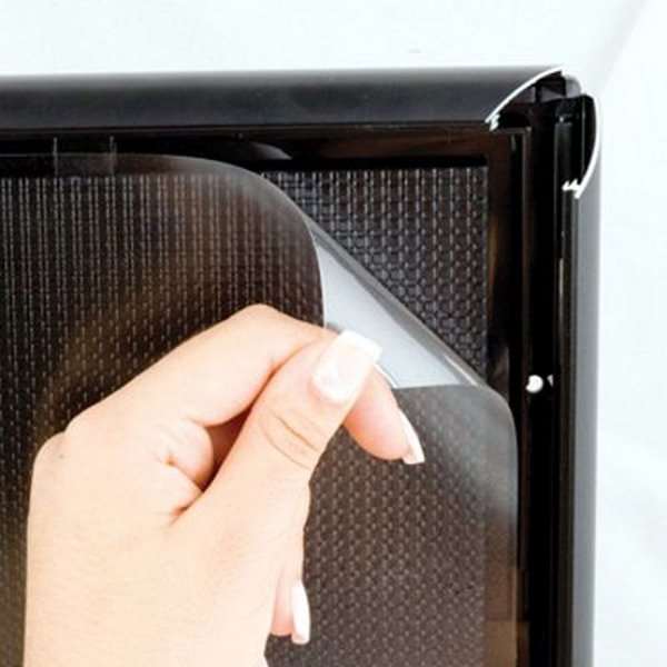 Dieser Klapprahmen verfügt über ein 14mm schwarzes pulverbeschichtetes RAL 9005 Profil und Gehrungsecken, was nicht nur eine haltbare und langanhaltende Oberfläche garantiert, sondern es auch einfach macht, ihn in jede Einrichtung einzupassen.