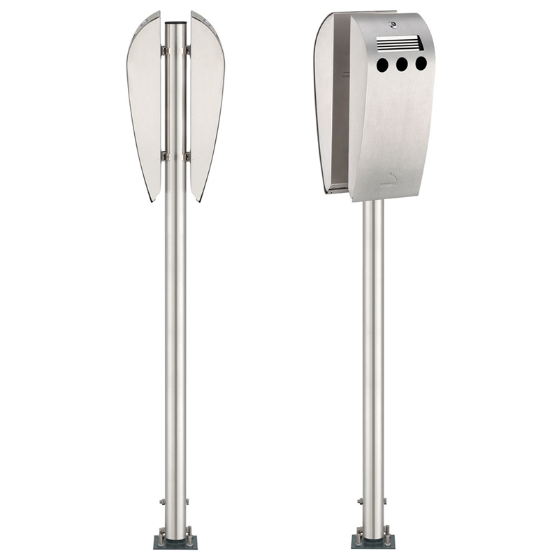 Stab in stabiler Ausführung zur Montage von Aschenbechern, Briefkästen und anderen Spendern. Wählen Sie zwischen Edelstahl oder grau lackiertem Stahl. Einfache Montage auf Fliesen, Beton usw.