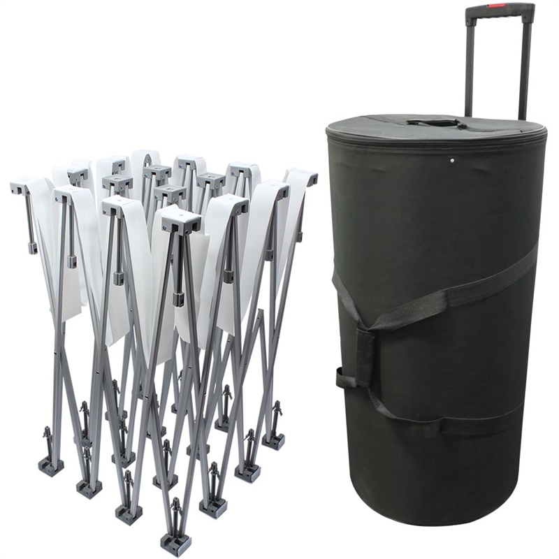 • Wenn Sie bereit sind, abzubauen, können Sie dies ganz einfach mit dem mitgelieferten schwarzen Rollkoffer bewerkstelligen, der auch beim Transport und der Aufbewahrung der Wand auf eine einfache und sichere Weise hilft.