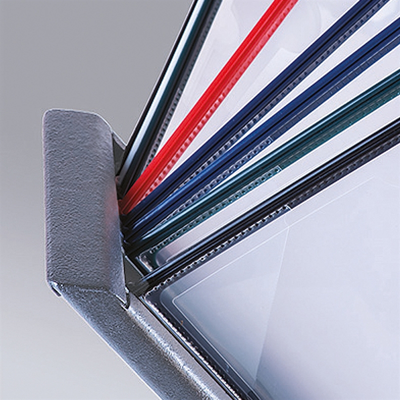 mit diesem Tischmodell. Es ist so konzipiert, dass es starke, transparente A4-Kunststoffhüllen verwendet, die separat bestellt werden. Je nach Ihren Vorlieben können Sie Kunststoffhüllen mit rotem, schwarzem oder grauem Rand wählen. Dies erleichtert die Aufteilung und Kategorisierung Ihrer Papiere auf effiziente und organisierte Weise. Trotz seiner beeindruckenden Stärke wiegt dieses Registersystem nur 0,5 kg, was es einfach macht, es je nach Bedarf zu bewegen und umzugestalten.
