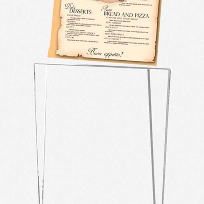 • Die Spitze ist aus transparentem Acryl gefertigt, das eine klare und deutliche Präsentation Ihrer Speisekarte ermöglicht.