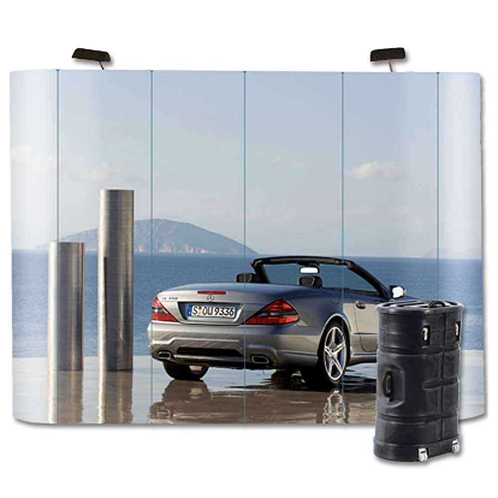 • Einseitige Pop-up-Wand: Das schwarze PVC-Paneelset ist für eine einseitige Pop-up-Wand konzipiert.