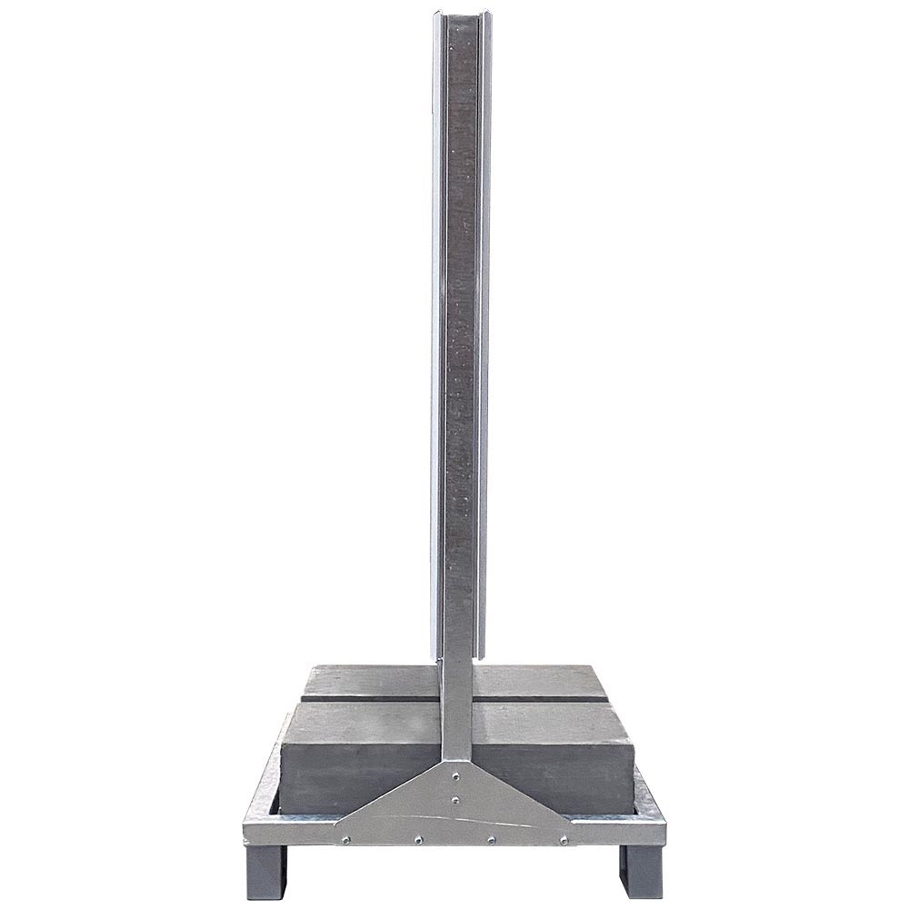 Hergestellt aus robustem, rostfreiem, silber-galvanisiertem Stahl und stabilisiert mit einem schweren Betonmodulfuß. Dieses kräftige Kundenstopper ist mit zwei Betonmodulen ausgestattet, die gewährleisten, dass es auch bei starken Windverhältnissen standhaft und stabil bleibt.