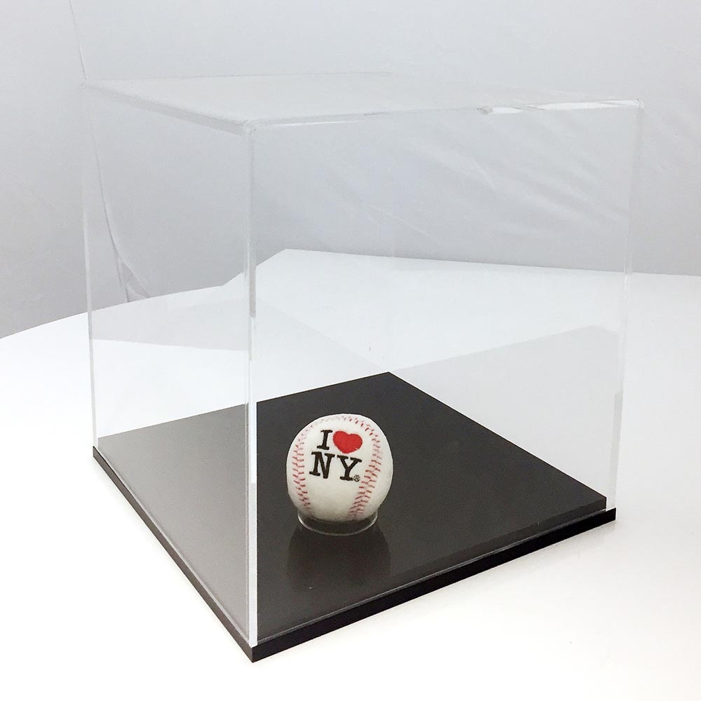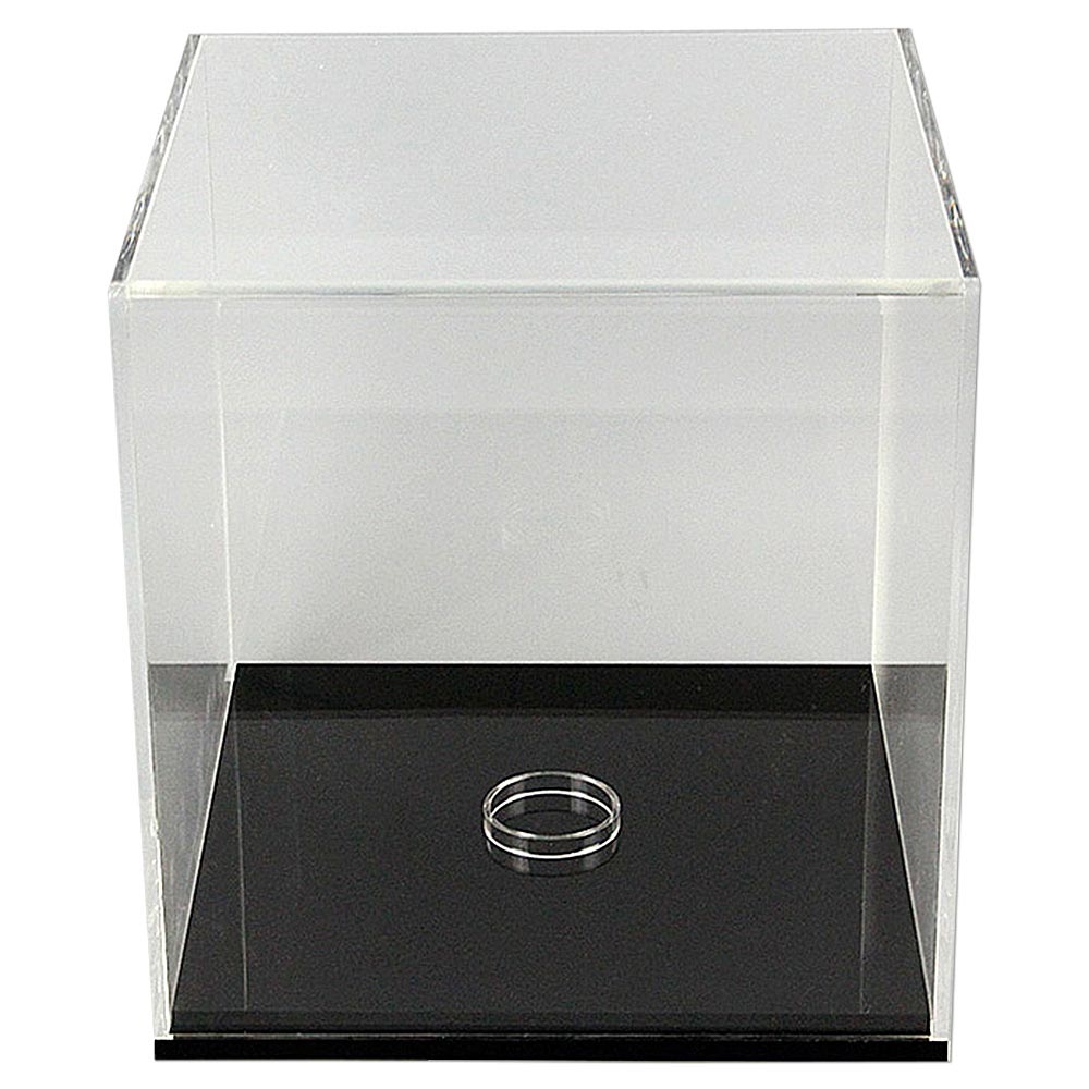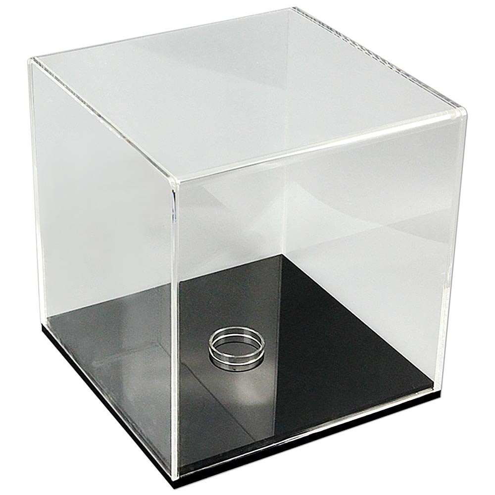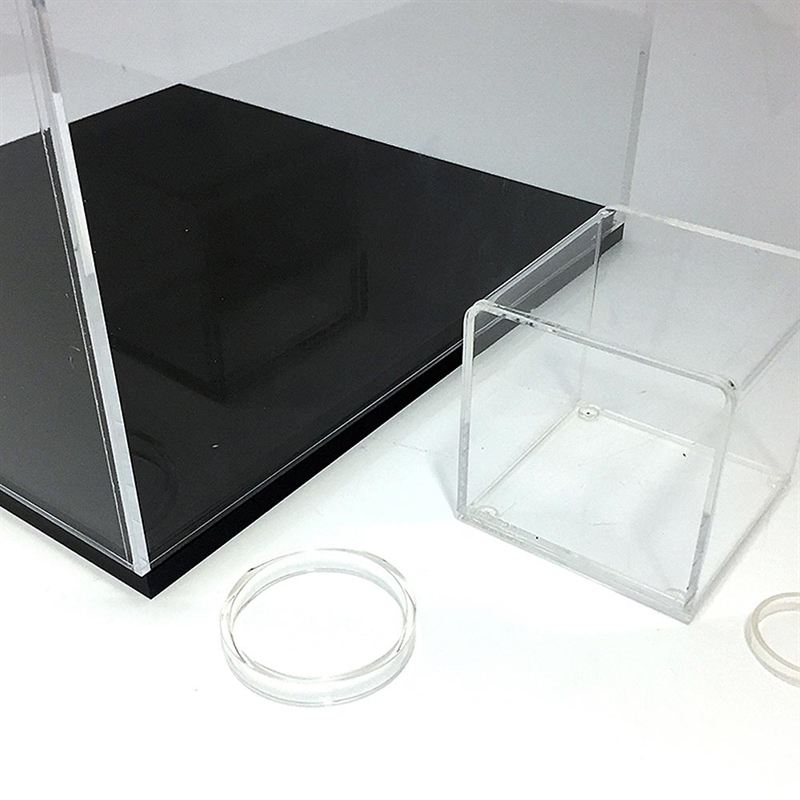 • Eleganter quadratischer Acrylkasten mit schwarzem Boden, perfekt zur professionellen Präsentation von Produkten.