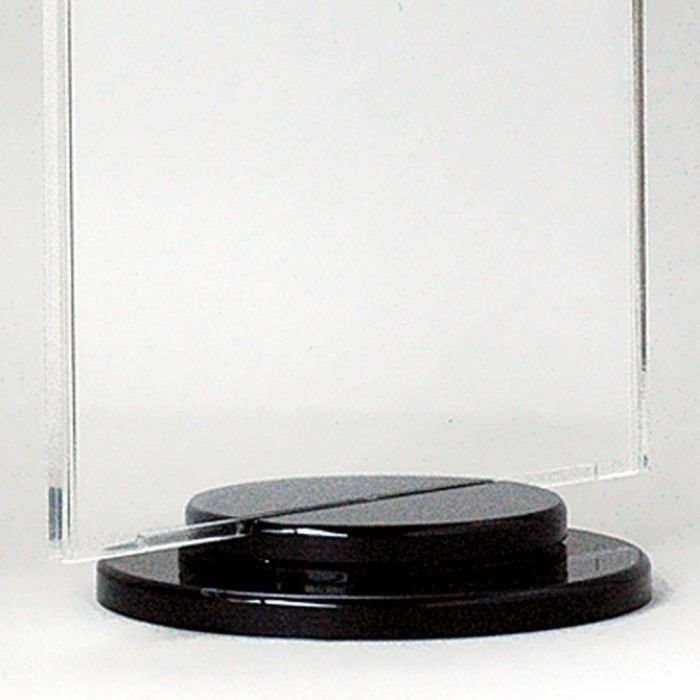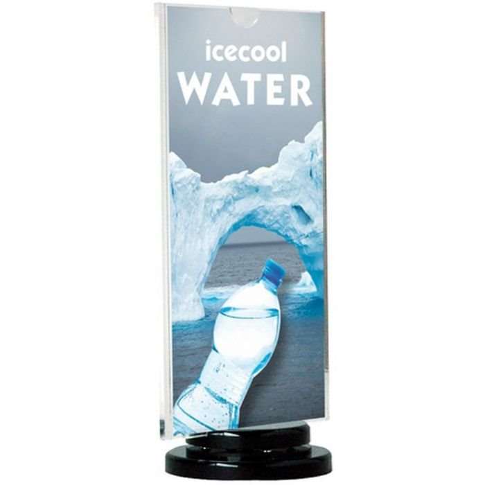 Acryl-Menühalter mit schwarzem Acrylfuß, der um 360° drehbar ist. Perfekt für Menüs, Angebote, Informationen und Preislisten.