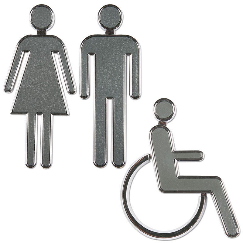 • Krom-beschichtetes 3D-Toilettenzeichen im einfachen und eleganten Design, das in jede Einrichtung passt.