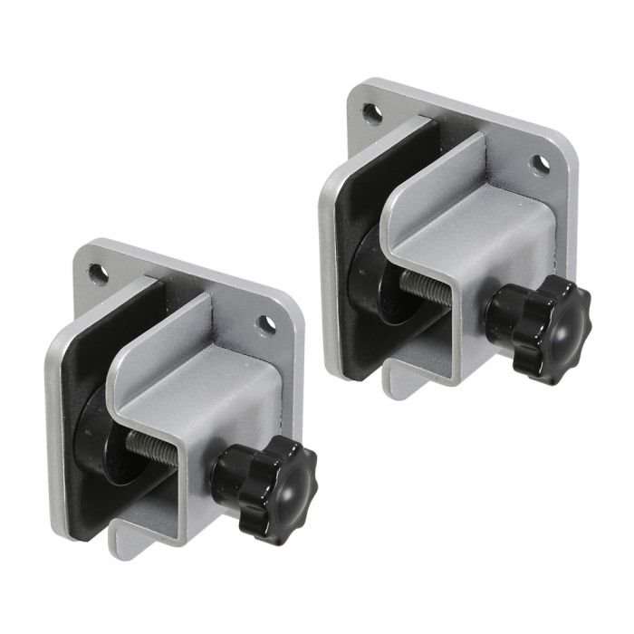 • Das Universal Clamp Kit lässt sich leicht mit den Schraublöchern in den Halterungen montieren, was das Anbringen an der Wand schnell und einfach macht.