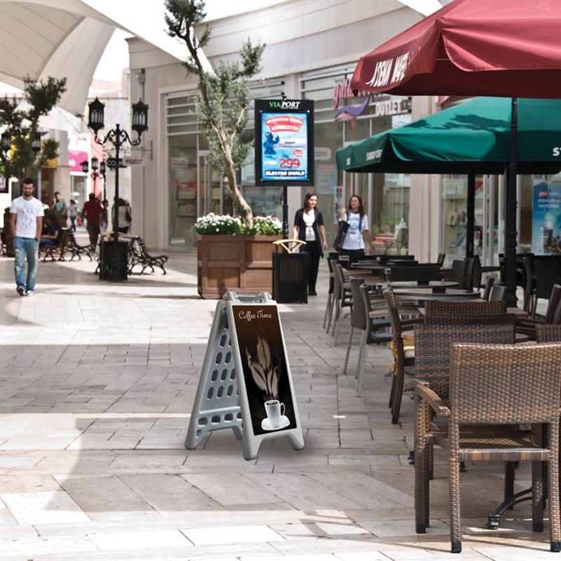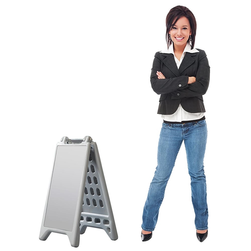 Das ultimative Schild für auffällige Präsentationen. Entworfen von Vacu Display, einem Vorreiter in der Schilderlösung, besteht dieses A-Rahmen-Kundenstopper aus robustem grauem Kunststoff, der sowohl den Zahn der Zeit als auch die Herausforderungen des Wetters standhält. Mit den Maßen von 41 x 75 x 47 cm und den Postergrößen von 32,5 x 57 cm eignet es sich ideal zur Präsentation von wichtigen Nachrichten, Sonderangeboten oder kommenden Veranstaltungen.