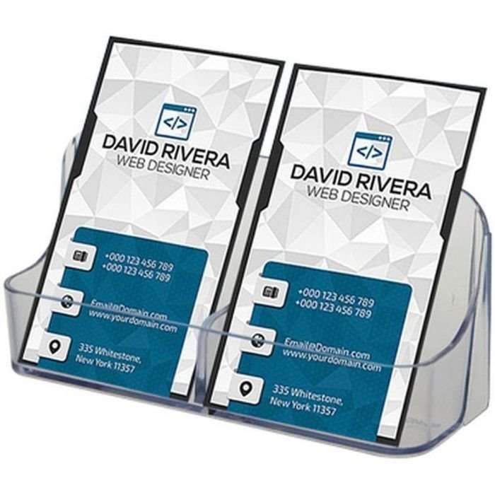 • Doppelter Besucherkartenhalter: Twin-Visitenkartenhalter, der entworfen wurde, um zwei Sets von Visitenkarten zu halten, ideal zum Präsentieren von zwei unterschiedlichen Arten von Visitenkarten.